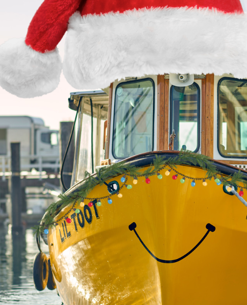 As you step onboard the festively decorated Lil Toot, you’ll be transported into a waterfront wonderland of holiday cheer.